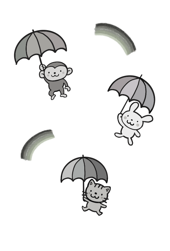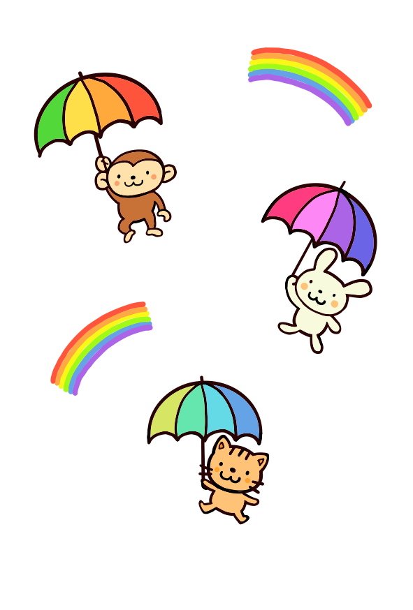 梅雨 雨降り さる かさ にじ 雨 動物 お便り 手紙 ねこ うさぎ