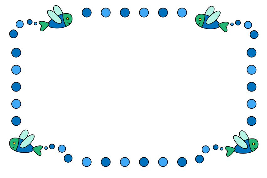 夏フレーム 海の生きもの さかな 魚 えんだより お便り 手紙 水しぶき 水玉