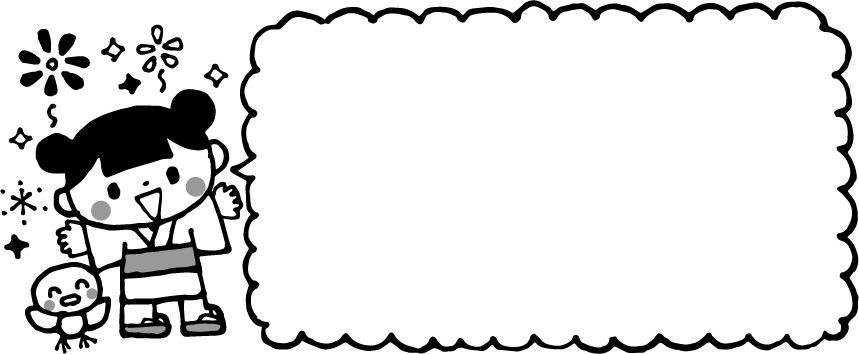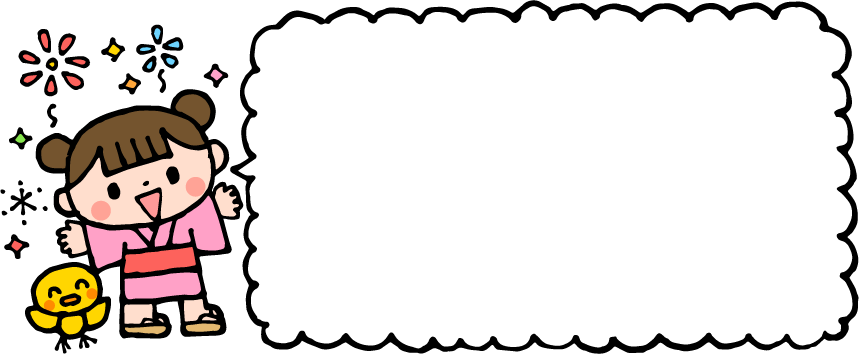 花火 夏祭り 祭り お祭り 浴衣 こども 子ども 女の子 園児 ひよこ ヒヨコ 鳥 動物 吹き出し 夏フレーム
