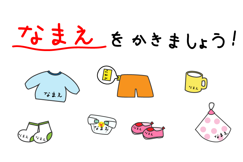 タオル コップ オムツ 靴下 くつした おむつ ズボン 体操服 持ちもの 名前 ハンカチ園だより お便り 手紙