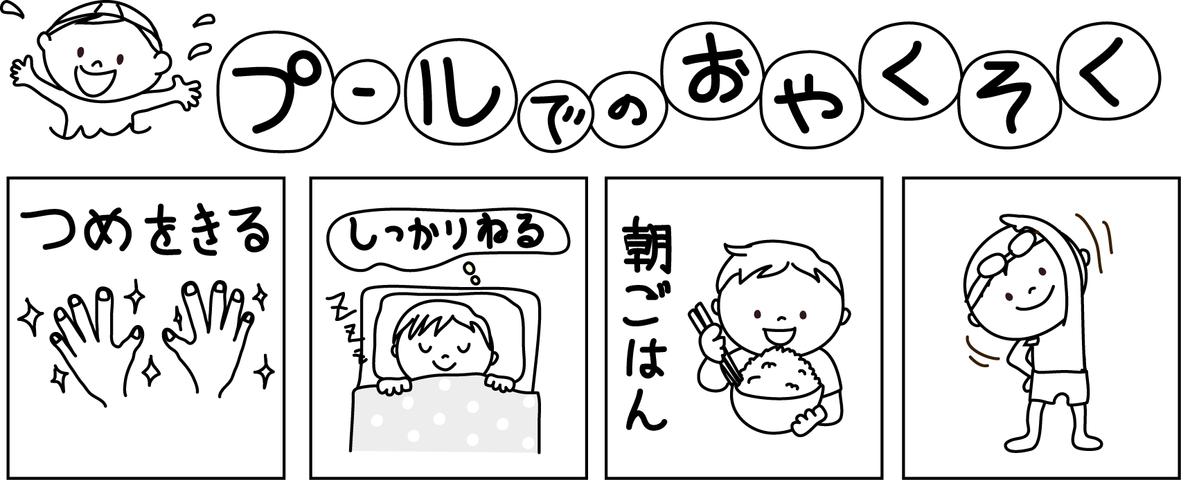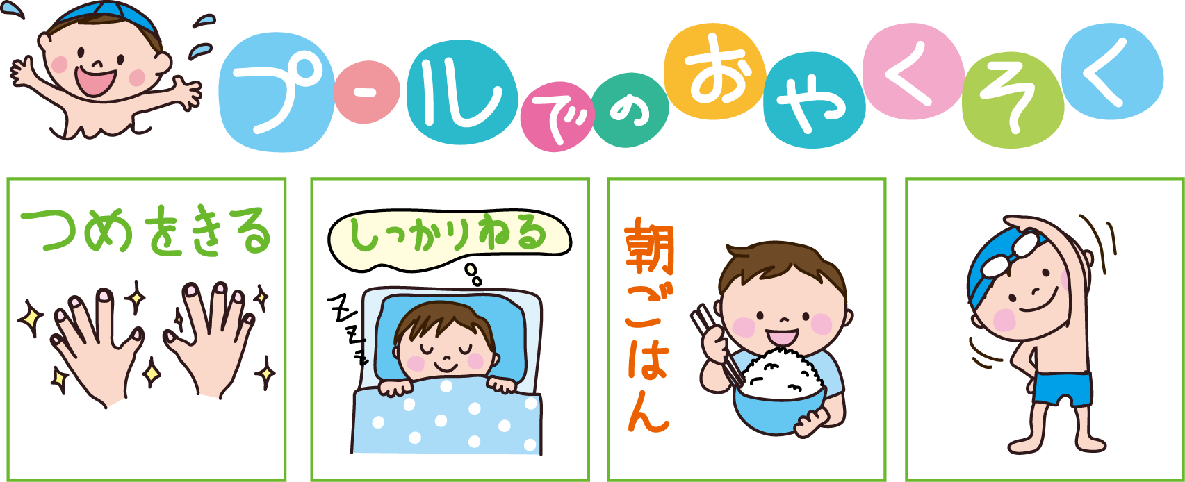 ぷーる 夏の特集 夏のイベント 夏休み ラジオ体操 暑い プール たいそう おやくそく しっかりねる