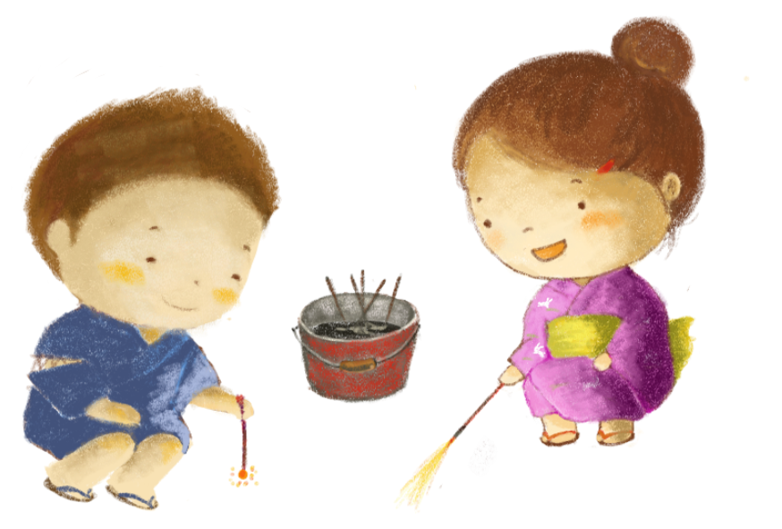 はなび あそび 線香花火 浴衣 子ども レトロゲーム