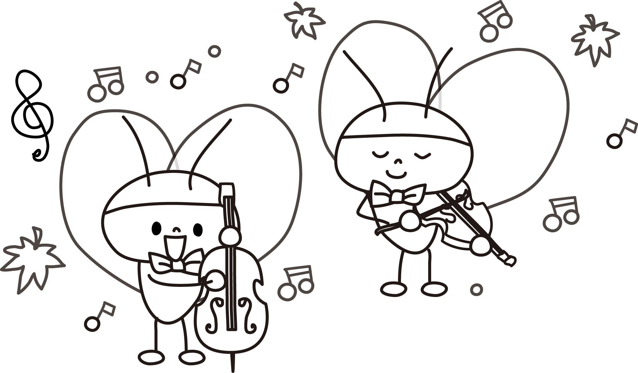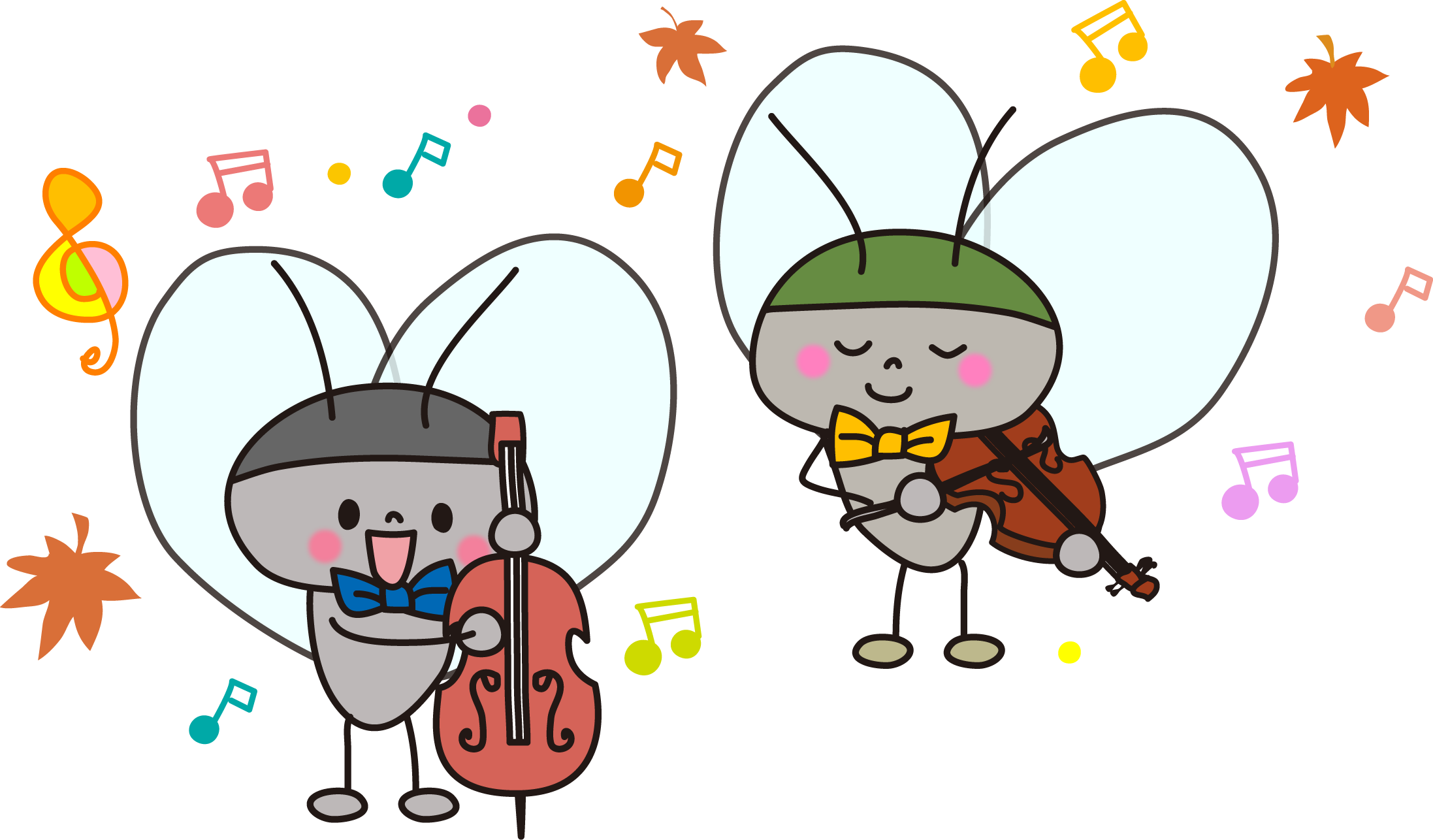 秋の特集 虫 秋の虫 音楽隊 おんぷ 音符 音楽 バイオリン すずむし 生きもの いきもの 生き物