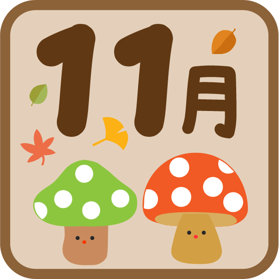 掲示板 手紙 おたより メッセージ オータム きのこ キノコ 枯れ葉 落ち葉 葉っぱ 園だより 予定 11月