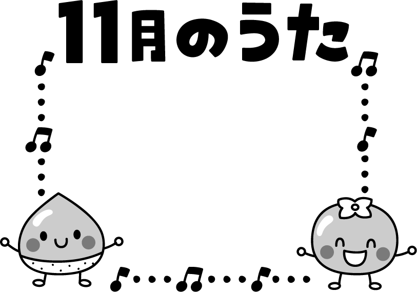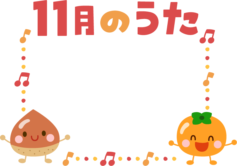 11月 11月のうた 11月の歌 歌 うた 合唱 かき 柿 カキ くり 栗 クリ 果物 フルーツ 食べ物 音符