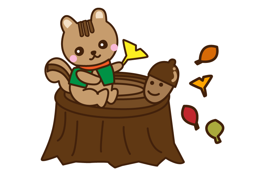 落ち葉 紅葉 えんだより お便り 手紙 りす どんぐり 切り株 晩秋