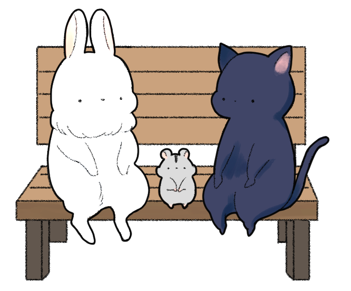 掲示板 手紙 おたより メッセージ ベンチ イス 座る ウサギ うさぎ ネコ ねこ ハムスター 動物 お話し 休憩 公園 友達 ともだち 友だち 生きもの いきもの 生き物