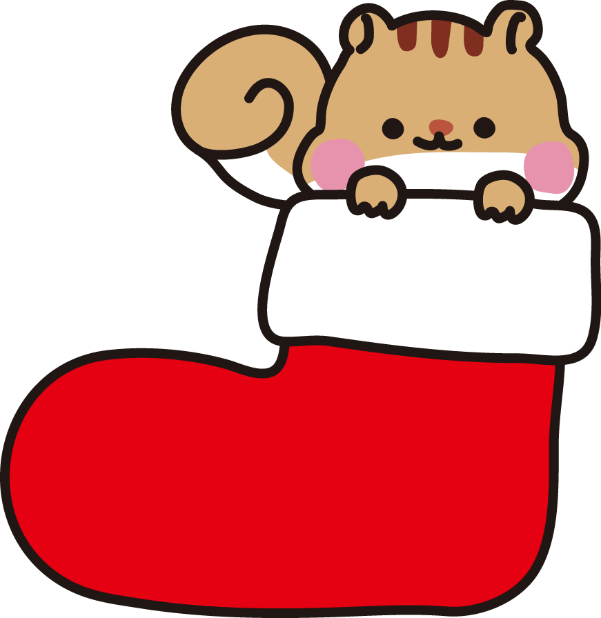 プレゼント りす 動物 サンタクロース クリスマス リス 靴下 冬フレーム 生きもの いきもの 生き物