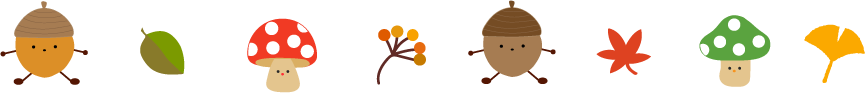 掲示板 手紙 おたより メッセージ バザー キノコ きのこ どんぐり ドングリ 落ち葉 枯れ葉 イチョウ 銀杏 もみじ 紅葉 秋ライン