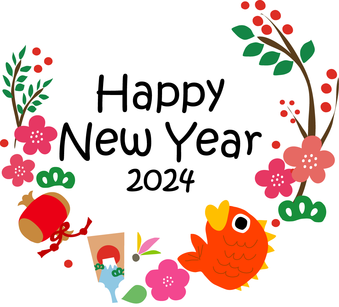 年賀 2024 辰 龍 干支 2024年 年賀状 お正月 正月 今年もよろしくお願いします NEW YEAR 梅 うめ 鯛 タイ 羽子板 はごいた
