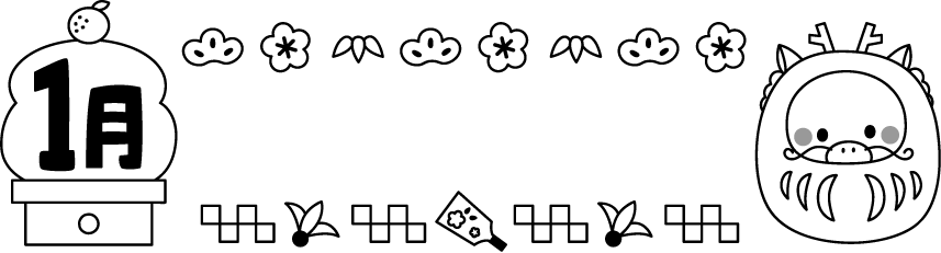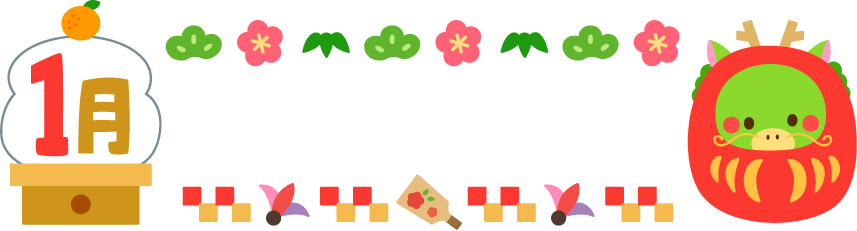 冬フレーム 1月 1月 園だより お正月 正月 花 梅 松 羽子板 だるま ダルマ 辰 動物 鏡餅