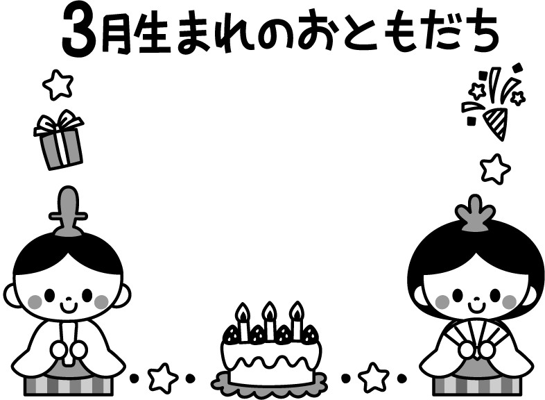 3月 3月 3月生まれのおともだち 3月生まれのお友達 誕生日 お誕生日 誕生日ケーキ ケーキ クラッカー プレゼント 星 ひな祭り 雛人形 お雛様 お内裏様