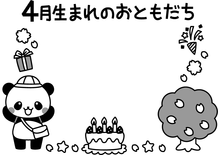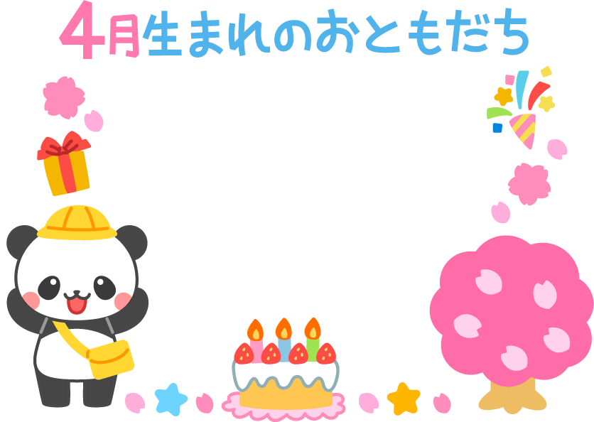 4月 4月 4月生まれのおともだち 4月生まれのお友達 誕生日 お誕生日 誕生日ケーキ ケーキ プレゼント クラッカー 星 桜 桜の木 木 ぱんだ パンダ 動物 園児
