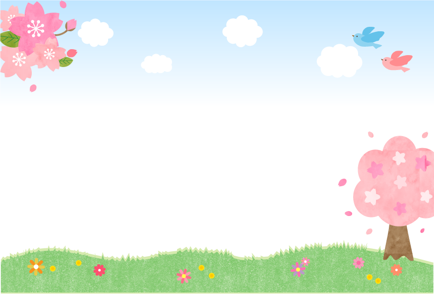 背景 雲 芝生 とり 鳥 はな イベント 屋外 花 サクラ 桜 さくら 外 空 そうげん カード メッセージ おたより 手紙 掲示板 花フレーム 桜の木