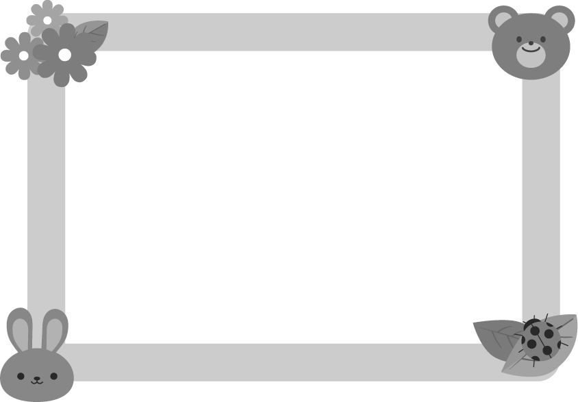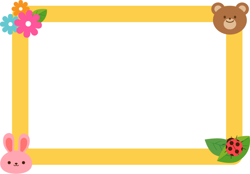 掲示板 手紙 おたより メッセージ お知らせ 囲み 黄色 クマ くま ウサギ うさぎ 葉っぱ 花 テントウムシ てんとう虫