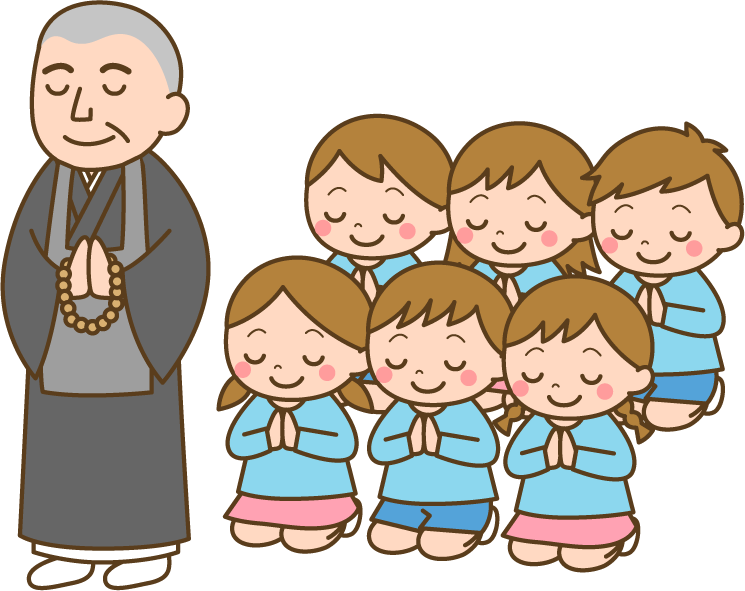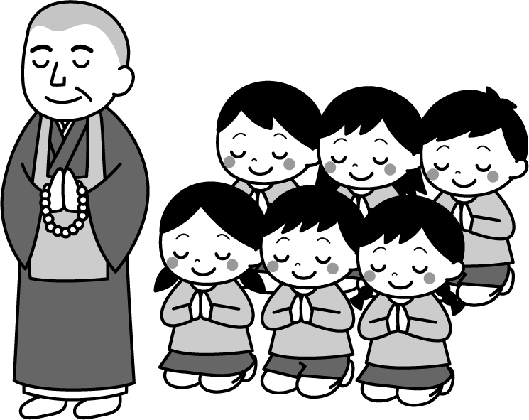 仏教 お祈り お坊さん 仏様 大人 男性 子ども こども 男の子 女の子 園児