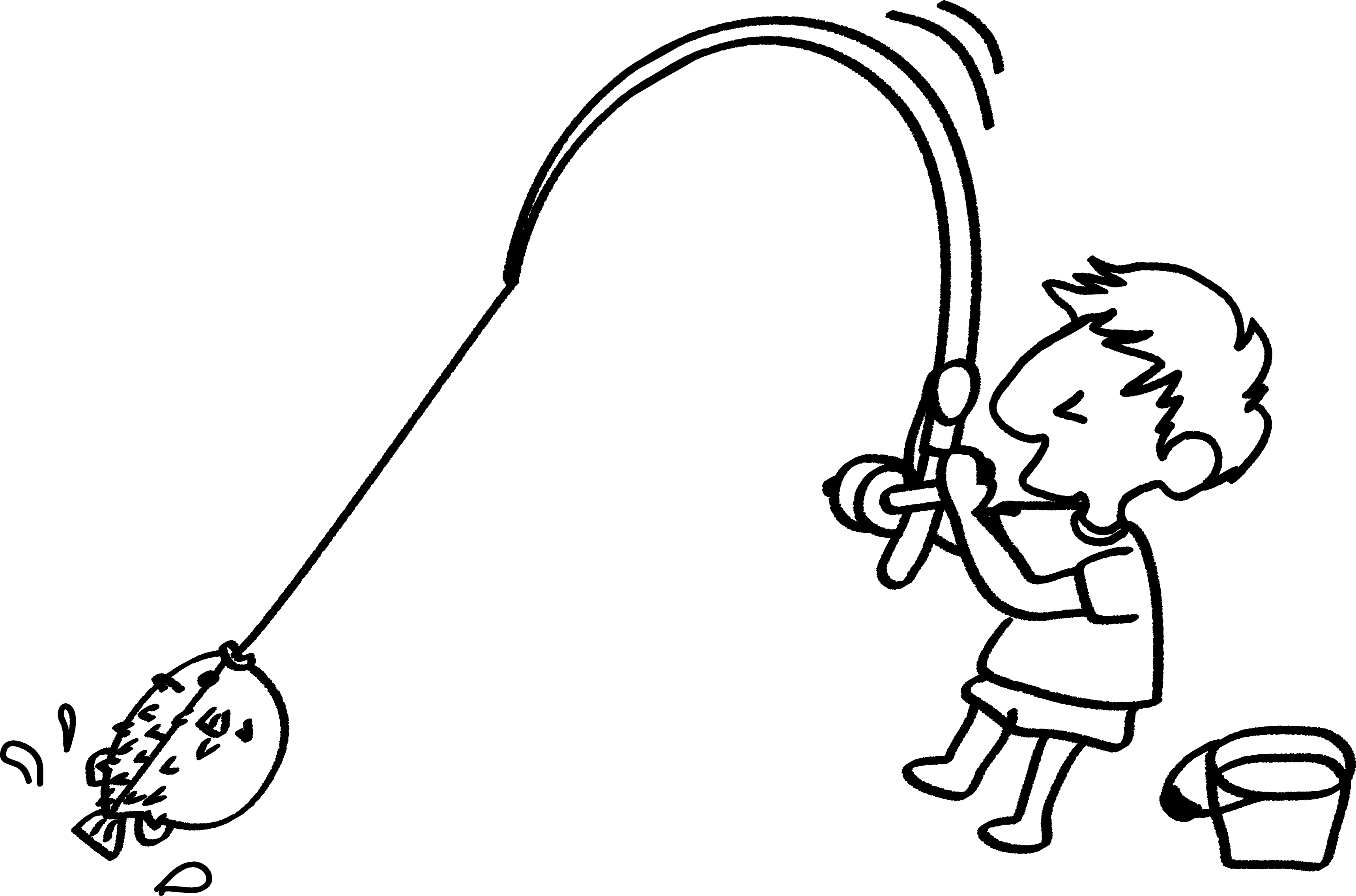 魚 夏 水 ライン シンプル 囲み えんだより 横ライン つり バケツ フィッシング ふぐ フグ はりせんぼん ハリセンボン 夏の思い出 夏のイベント アウトドア OUTDOOR