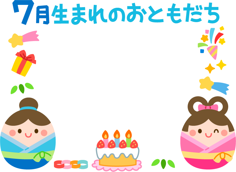 7月生まれのおともだち 7月生まれのお友達 誕生日 誕生日ケーキ お誕生日 誕生会 お誕生会 誕生日会 お誕生日会 こども園 幼稚園 保育園 七夕 織姫 彦星 星 流れ星 輪っか 輪飾り 飾り キラキラ 7月 7月 ケーキ 笹 笹の葉 夏フレーム