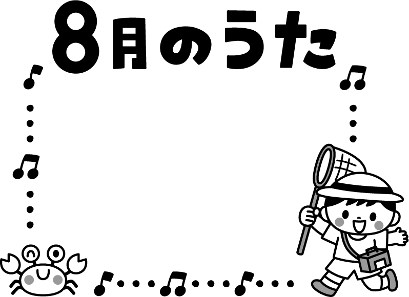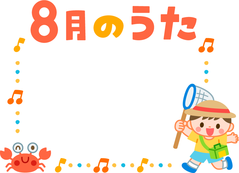 保育園 こども園 幼稚園 音符 歌 うた 8月の歌 8月のうた 8月 8月 虫取りかご 虫かご 虫取り網 かに カニ 蟹 夏フレーム