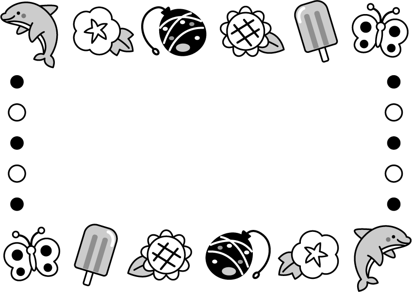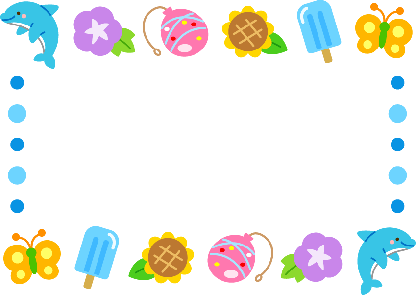 夏フレーム イルカ 海の生き物 動物 あさがお アサガオ 朝顔 花 ひまわり ヒマワリ 向日葵 ヨーヨー アイス アイスクリーム 棒アイス ちょうちょ チョウチョ 蝶 虫 食べ物 プールゲーム