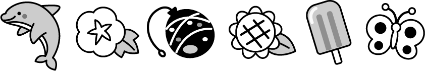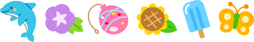 食べ物 虫 蝶 チョウチョ ちょうちょ 棒アイス アイスクリーム アイス ヨーヨー 向日葵 ヒマワリ ひまわり 花 朝顔 アサガオ あさがお 動物 海の生き物 イルカ 夏フレーム 園だより 幼稚園 保育園 こども園 プールゲーム