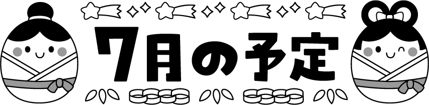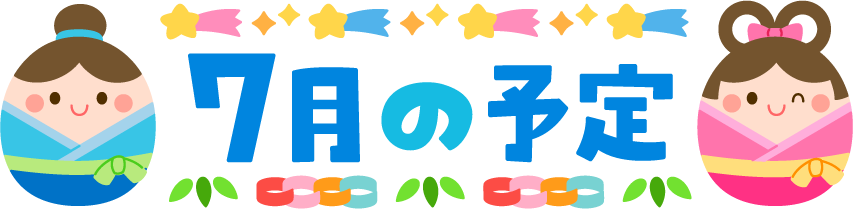 7月 7月 予定 7月の予定 園だより 幼稚園 こども園 保育園 七夕 織姫 彦星 笹の葉 飾り 星 流れ星 キラキラ