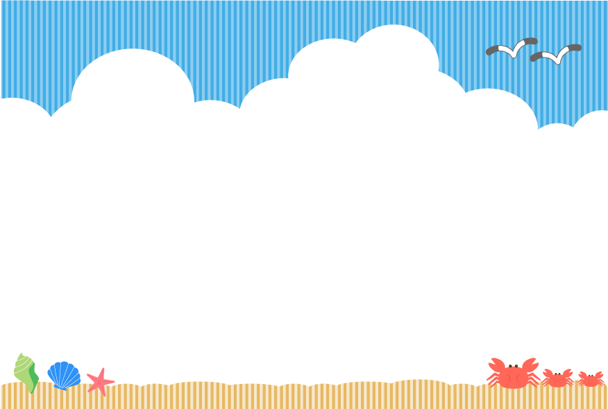 掲示板 手紙 おたより メッセージ カード イベント 浜辺 空 外 海 カモメ かもめ かに カニ 貝 貝殻 雲 入道雲 くも 風景 背景 葉書 ハガキ はがき 暑中お見舞い 暑中見舞い 夏フレーム