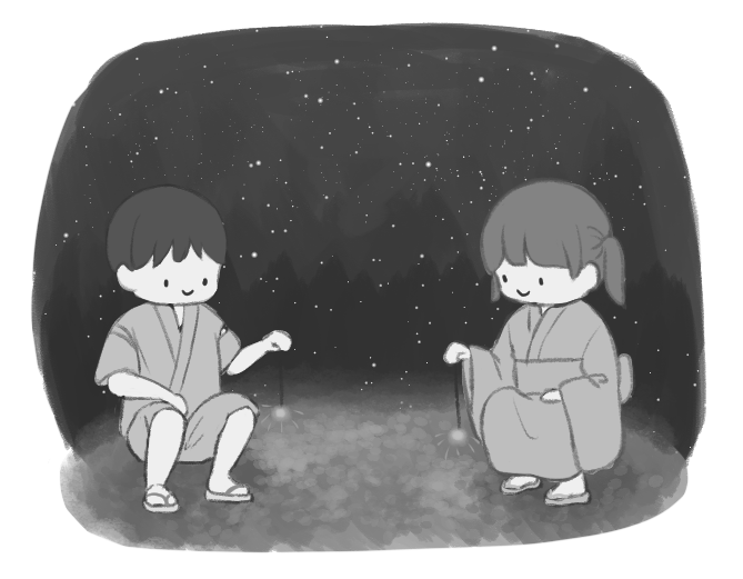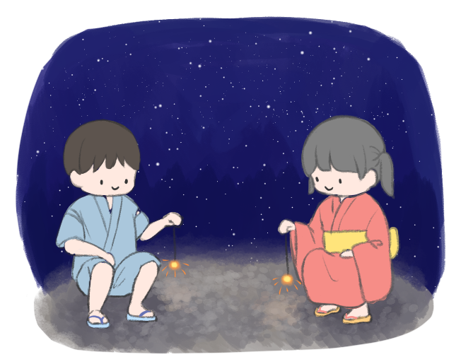 掲示板 手紙 園だより 子ども 浴衣 線香花火 あそび 遊び はなび 夜空