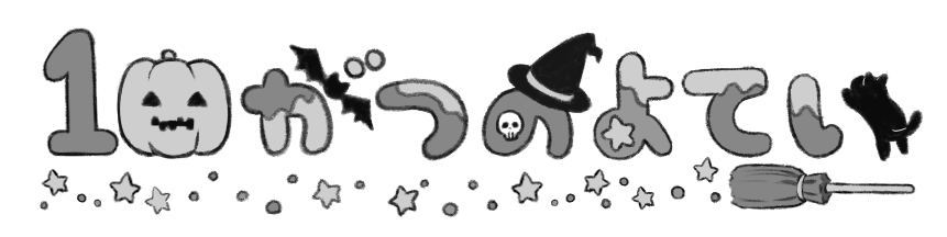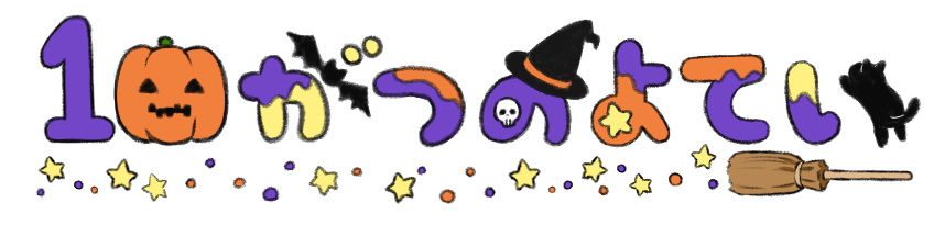 掲示板 手紙 園おたより よてい 行事予定 スケジュール ハロウィン はろうぃん かぼちゃ カボチャ コウモリ ほうき 黒猫 星 ほし