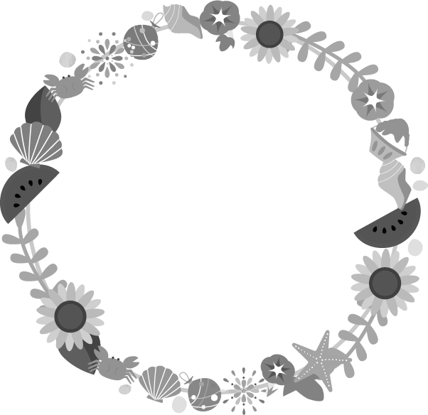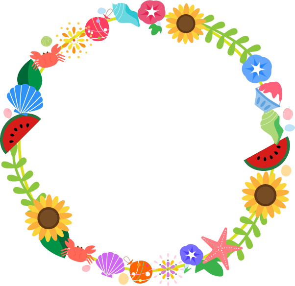 掲示板 手紙 園だより お知らせ メッセージ スイカ すいか 花火 はなび カニ かに 貝 ひまわり ヒマワリ ヨーヨー アサガオ あさがお かき氷 カキ氷 葉っぱ はっぱ
