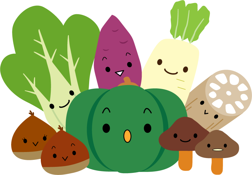 掲示板 手紙 園だより お知らせ 秋の野菜 やさい 青梗菜 チンゲンサイ さつまいも サツマイモ 大根 だいこん レンコン れんこん 栗 くり シイタケ しいたけ きのこ キノコ かぼちゃ カボチャ 南瓜 食育だより 食育 食べ物 給食 食べる ベジタブル 野菜マルシェ