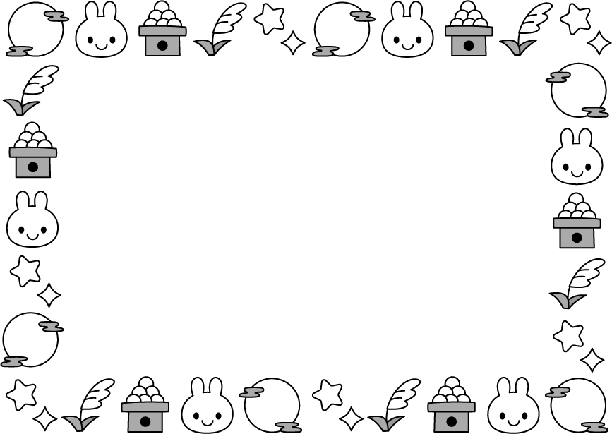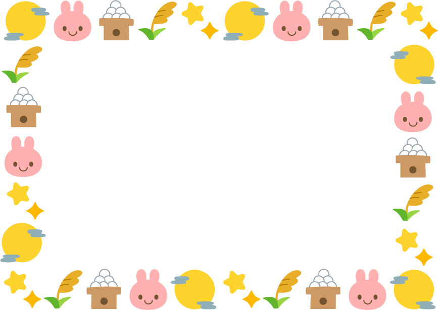 保育園 幼稚園 こども園 園だより お月見 うさぎ ウサギ 兎 動物 団子 お団子 食べ物 ススキ 星 キラキラ 月 月見団子 中秋の名月 月見 秋フレーム