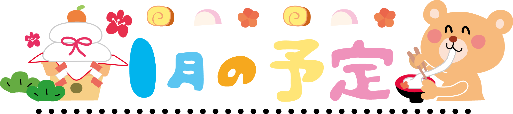 クマ くま タイトル 新聞 お便り おたより 園だより 1月 お正月 もちつき 雑煮 鏡餅