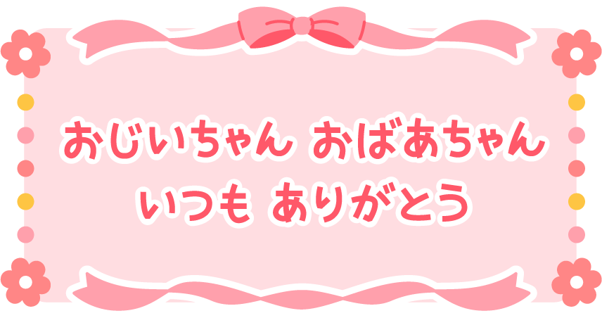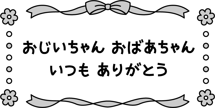保育園 幼稚園 こども園 園だより 介護施設 デイサービス 老人ホーム お年寄り 老人 高齢者 女性 おばあさん おばあちゃん 男性 おじいさん おじいちゃん 敬老の日 メッセージ メッセージカード 花 リボン