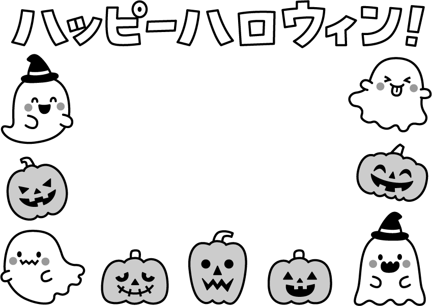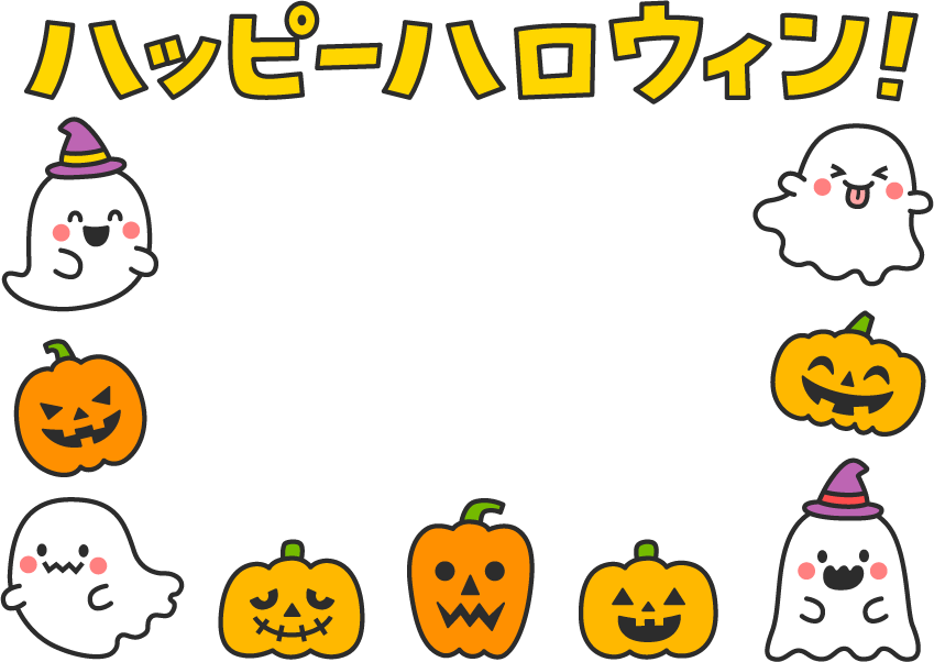 秋フレーム 保育園 幼稚園 こども園 園だより ハロウィン ハッピーハロウィン HAPPY HALLOWEEN 南瓜 かぼちゃ カボチャ パンプキン 帽子 おばけ オバケ