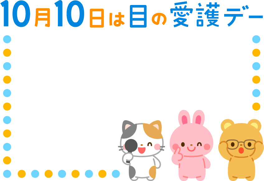 保育園 幼稚園 こども園 園だより 目の愛護デー 10月 10月 10月10日 目 視力保存デー 目の愛護 視力保存 視力検査 視力 めがね 眼鏡 メガネ 動物 くま 熊 クマ うさぎ 兎 ウサギ ねこ 猫 ネコ リクエスト