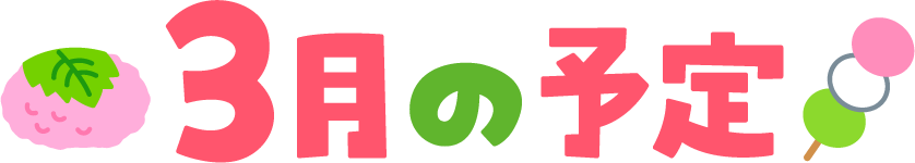 3月 3月 3月の予定 予定 園だより こども園 幼稚園 保育園 桜餅 さくらもち 餅 お餅 三色団子 団子 お団子 だんご 和菓子 食べ物 ひなまつり 雛祭り もち おもち