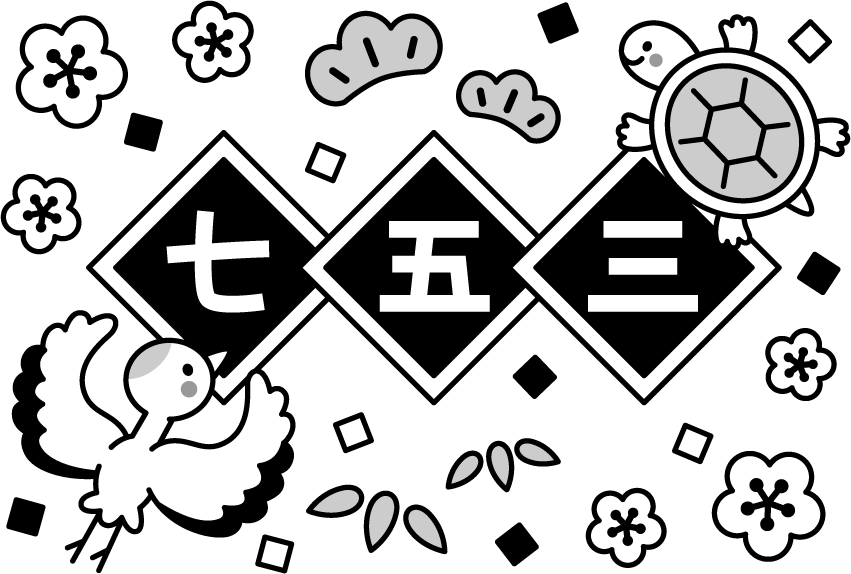 花 梅 松 11月 11月 園だより こども園 幼稚園 保育園 七五三 笹 かめ カメ 亀 つる ツル 鶴 動物 753