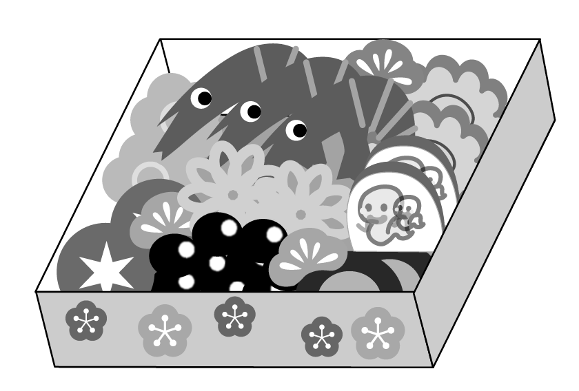 おせち おせち料理 お正月 新年 巳 へび年 えんだより お便り 手紙 えび かまぼこ 黒豆