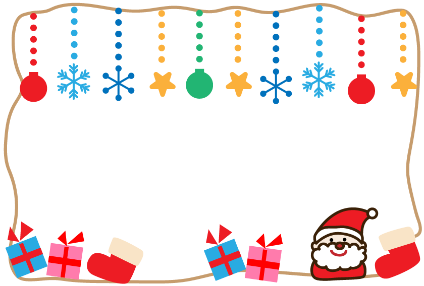 クリスマス プレゼント メッセージ 園だより 手紙 冬フレーム サンタ Xmas くつした