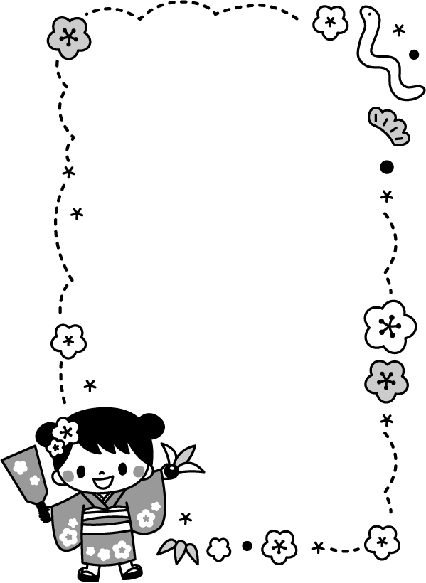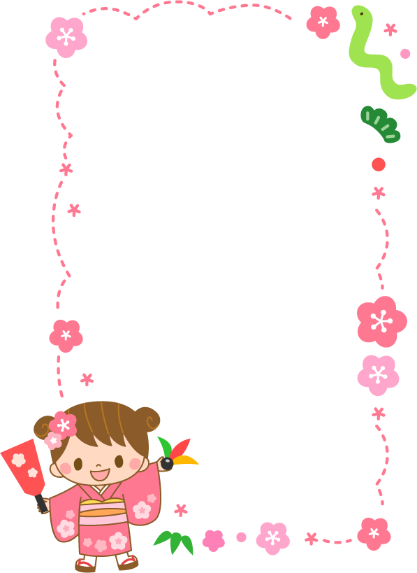 保育園 幼稚園 こども園 園だより お正月 正月 2025 へび ヘビ 蛇 巳 動物 年賀 年賀状 冬フレーム こども 子ども 女の子 着物 羽子板 花 梅 松 笹 2025