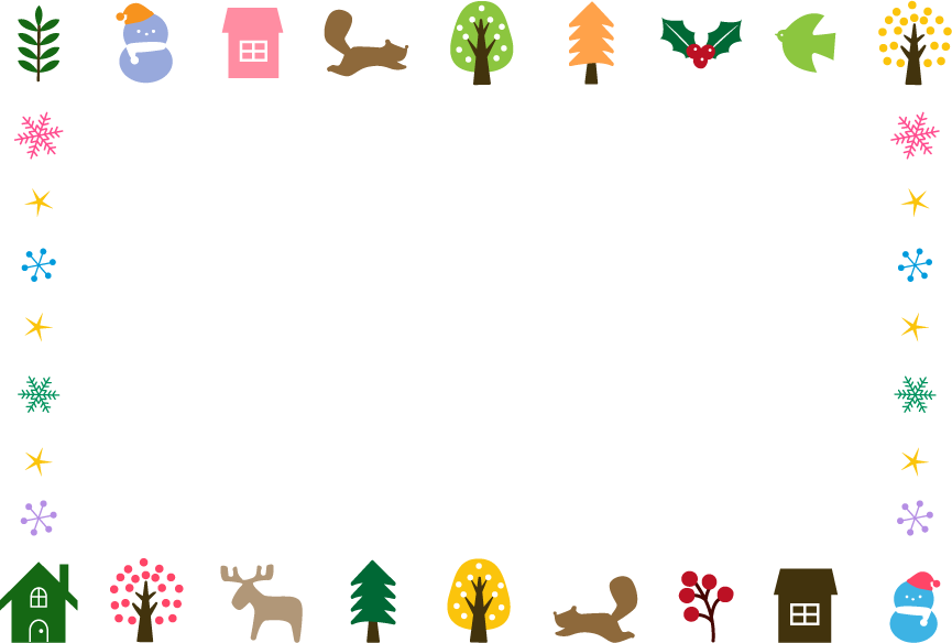 クリスマス ヒイラギ 雪だるま トナカイ とり 鳥 リス 葉っぱ 樹木 木 家 雪 結晶 ふゆ ウインター 北欧風 北欧 園だより