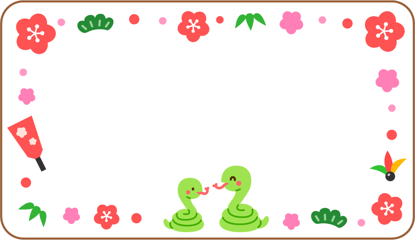 保育園 幼稚園 こども園 園だより お正月 正月 2025 2025 へび ヘビ 蛇 巳 動物 年賀 年賀状 冬フレーム 花 梅 梅の花 羽子板 松 笹