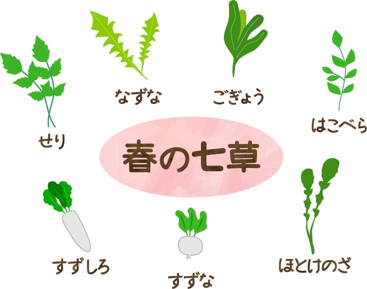 園だより 掲示板 七草がゆ 七草粥 ななくさ 1月7日 節句 無病息災 習慣 おかゆ セリ ナズナ ゴギョウ ハコベラ ホトケノザ スズナ・ スズシロ せり なずな ごぎょう はこべら ほとけのざ すずな すずしろ リクエスト