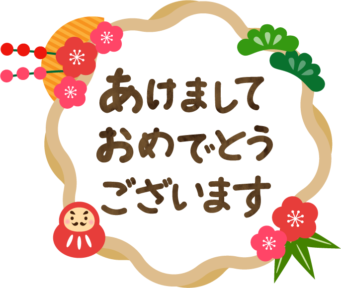 ダルマ だるま 松竹梅 しめ縄 正月飾り 2025 巳年 へび年 賀正 あいさつ 年始 新年 あけまして あけましておめでとうございます 明けまして 謹賀新年 年賀状 メッセージ 園だより