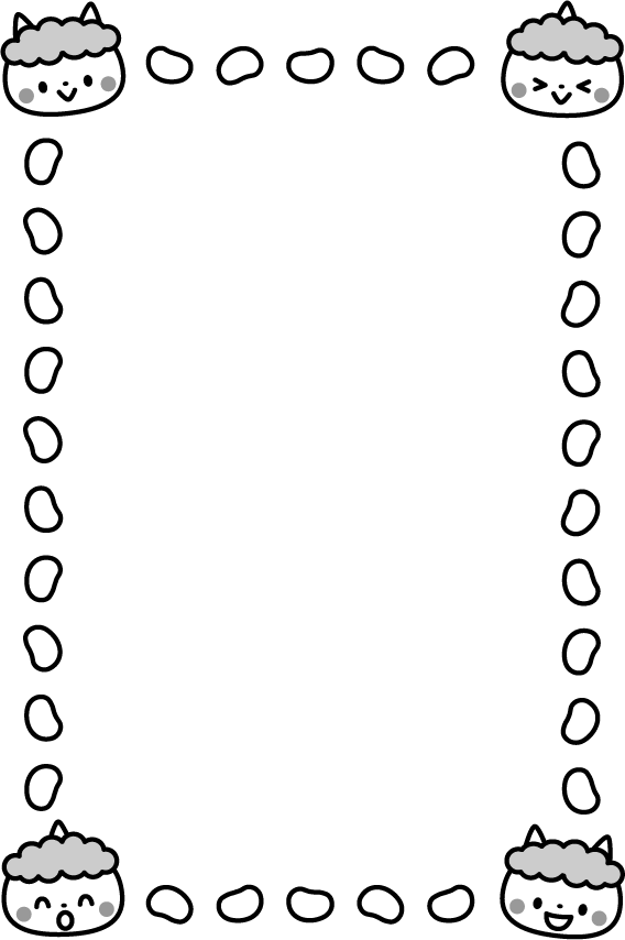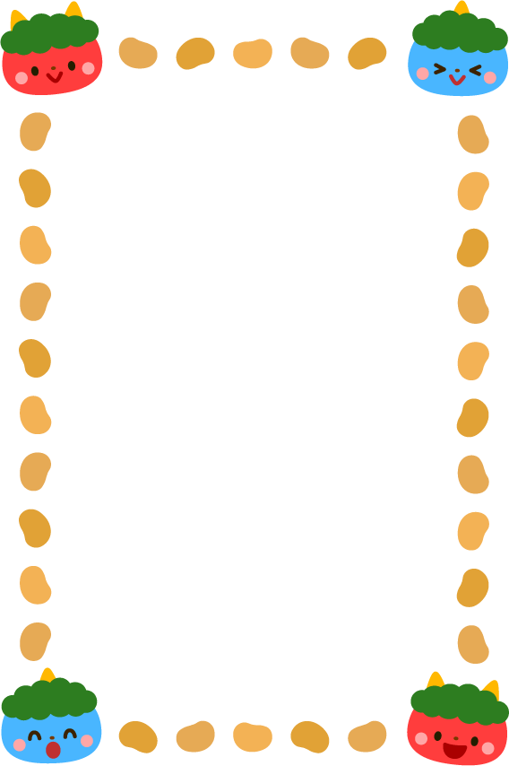 冬フレーム 豆撒き 豆まき 豆 まめ 保育園 幼稚園 こども園 園だより えんだより 2月 2月 節分 おに オニ 鬼 赤鬼 青鬼 冬のイベント