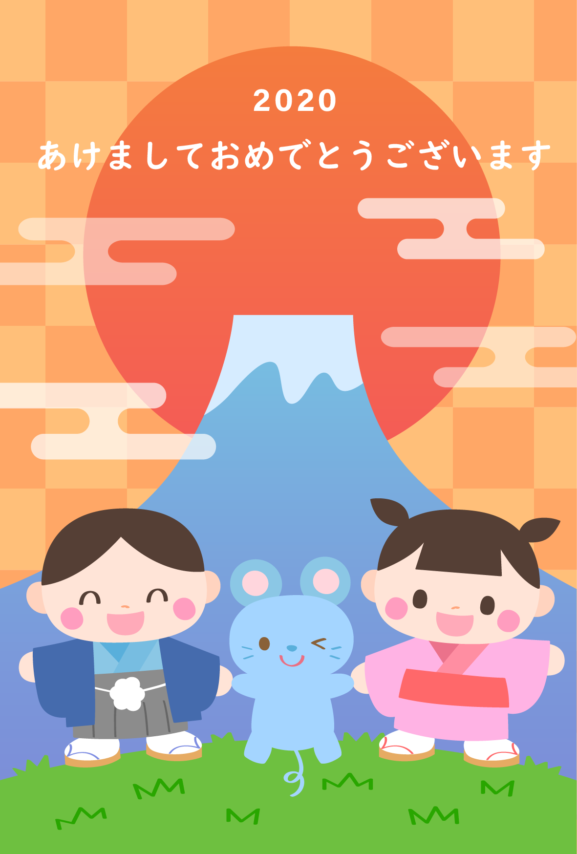 お正月 ねずみ 年賀状 着物