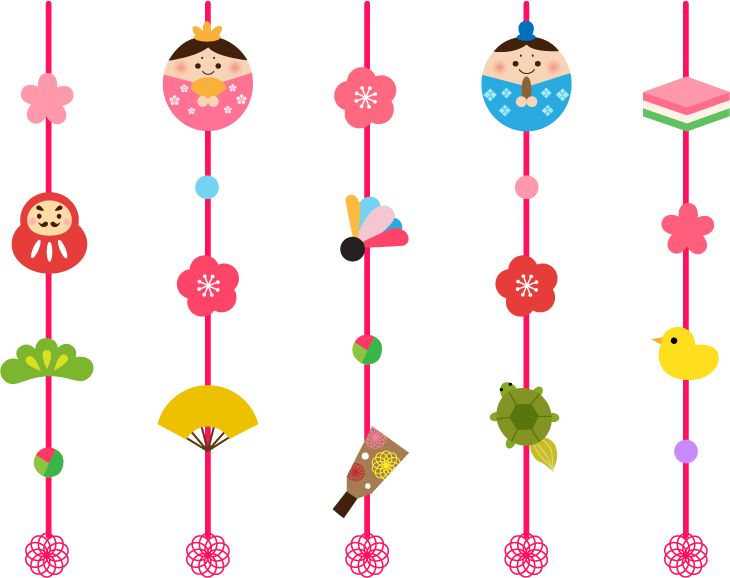 羽子板 だるま 扇 花 ひよこ 亀 モビール つるし雛 つるしかざり 雛祭り ひな祭り ひなまつり 桃の節句 節句 ひな人形 3月 園だより