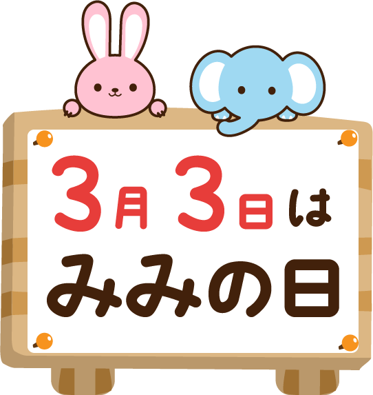 園だより お知らせ 3月3日 みみの日 耳 みみみ記念日 聴覚 難聴 言語障害 社会福祉 日本耳鼻咽喉科学会 うさぎ ウサギ ぞう ゾウ 看板