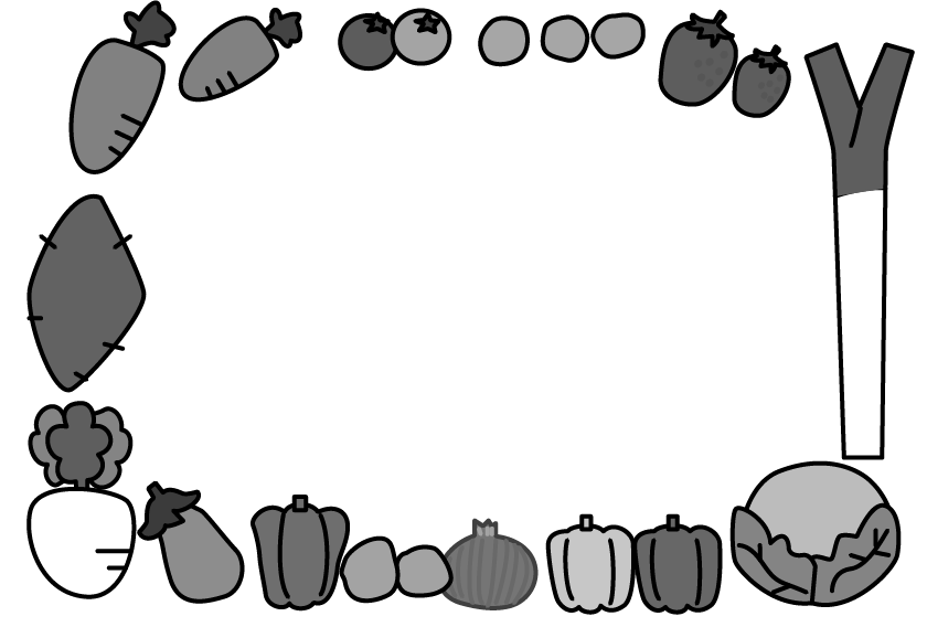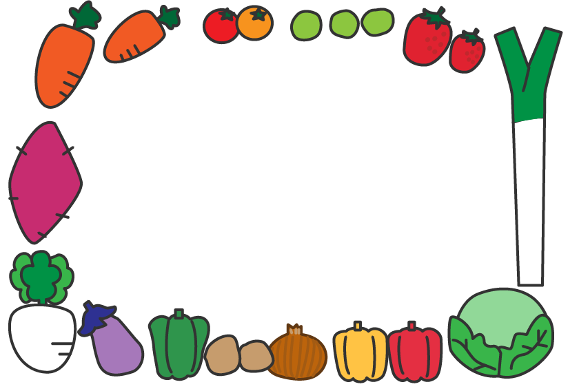 やさい ねぎ じゃがいも ピーマン かぶ にんじん トマト パプリカ 豆 さつまいも プチトマト なすび 食育 野菜フレーム えんだより お便り 手紙 キャベツ 野菜マルシェ